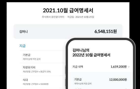 급여 정산이 완료되면, 명세서가 자동 생성되어 구성원에게 발송할 수 있어요.